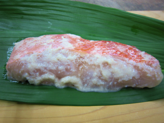 金目鯛(きんめだい)は脂ののった高級品です。粕との相性もよく柔らかな口当たりです。